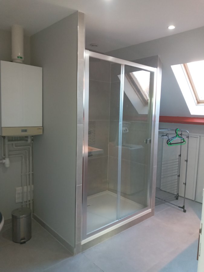 Au niveau R+1, une grande chambre équipée d’une douche et d’un lavabo offre autonomie et confort. Au niveau R+2, trois chambres supplémentaires et une salle de douche complètent l’espace nuit. Une table ovale prévue pour 8 couverts et 2 TV assurent convivialité et divertissement.